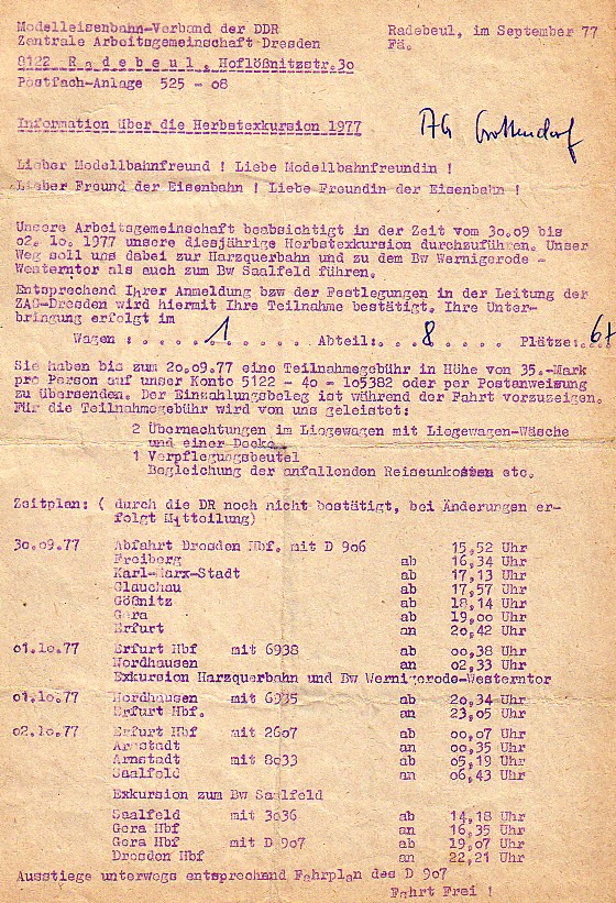 Vom 6. bis 9.Mai nahmen wir an einer Exkursion der ZAG Dresden nach Warschau, Krakau und Zakopane teil. Dabei gab es in Breslau eine kleine Panne. Der Zug von Dresden wurde hier mit dem Zug von Prag nach Warschau vereinigt. Jemand hatte vergessen, daß der Dresdner Zug ja die beiden Liegewagen der Modelleisenbahner zusätzlich mitführte. Dadurch wurde die zulässige Gesamtlänge für Reisezüge überschritten. Man ließ einfach unsere beiden Wagen in Breslau bis zum nächsten Zug stehen.